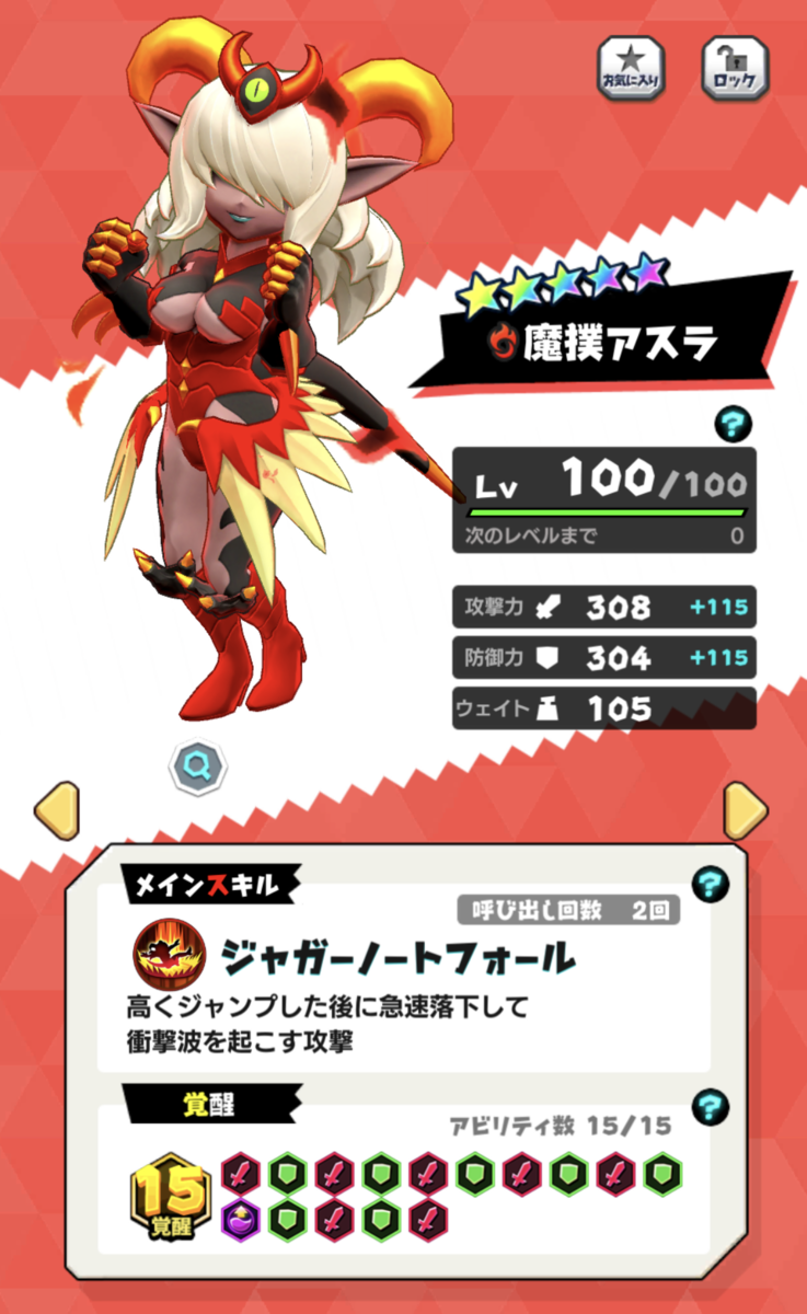 15回覚醒したアスラのパラメータはこんな感じです。